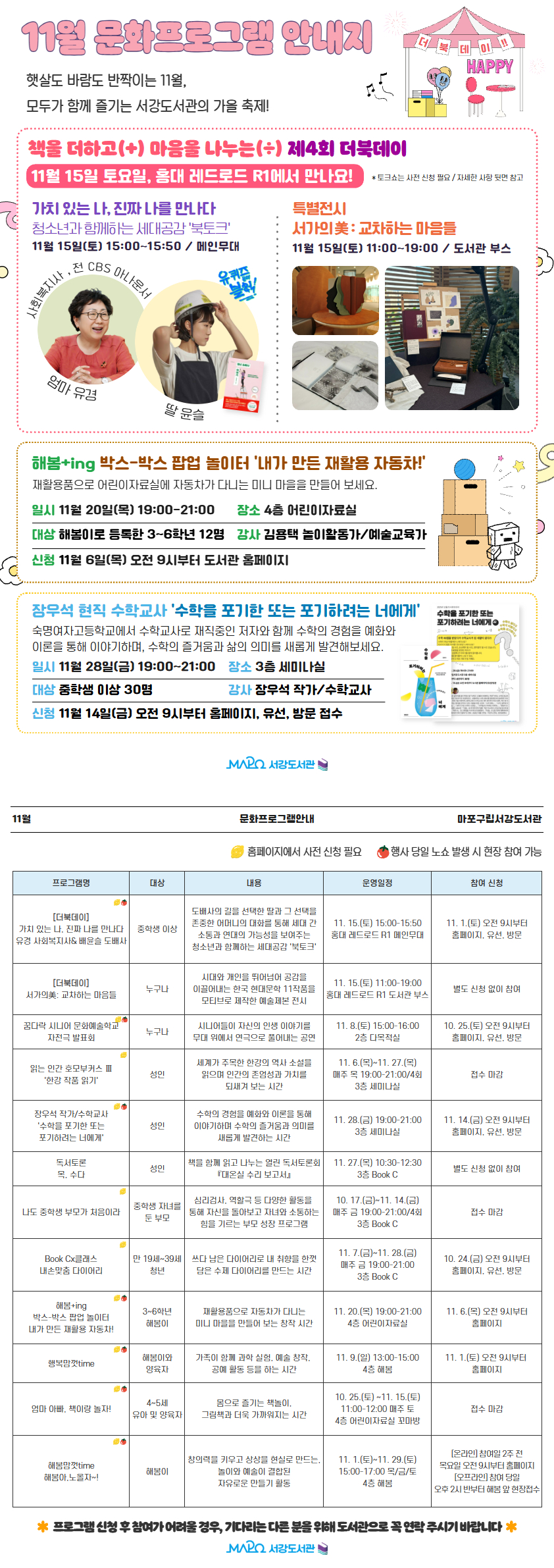 모두가 함께 즐기는 서강도서관의 가을축제!