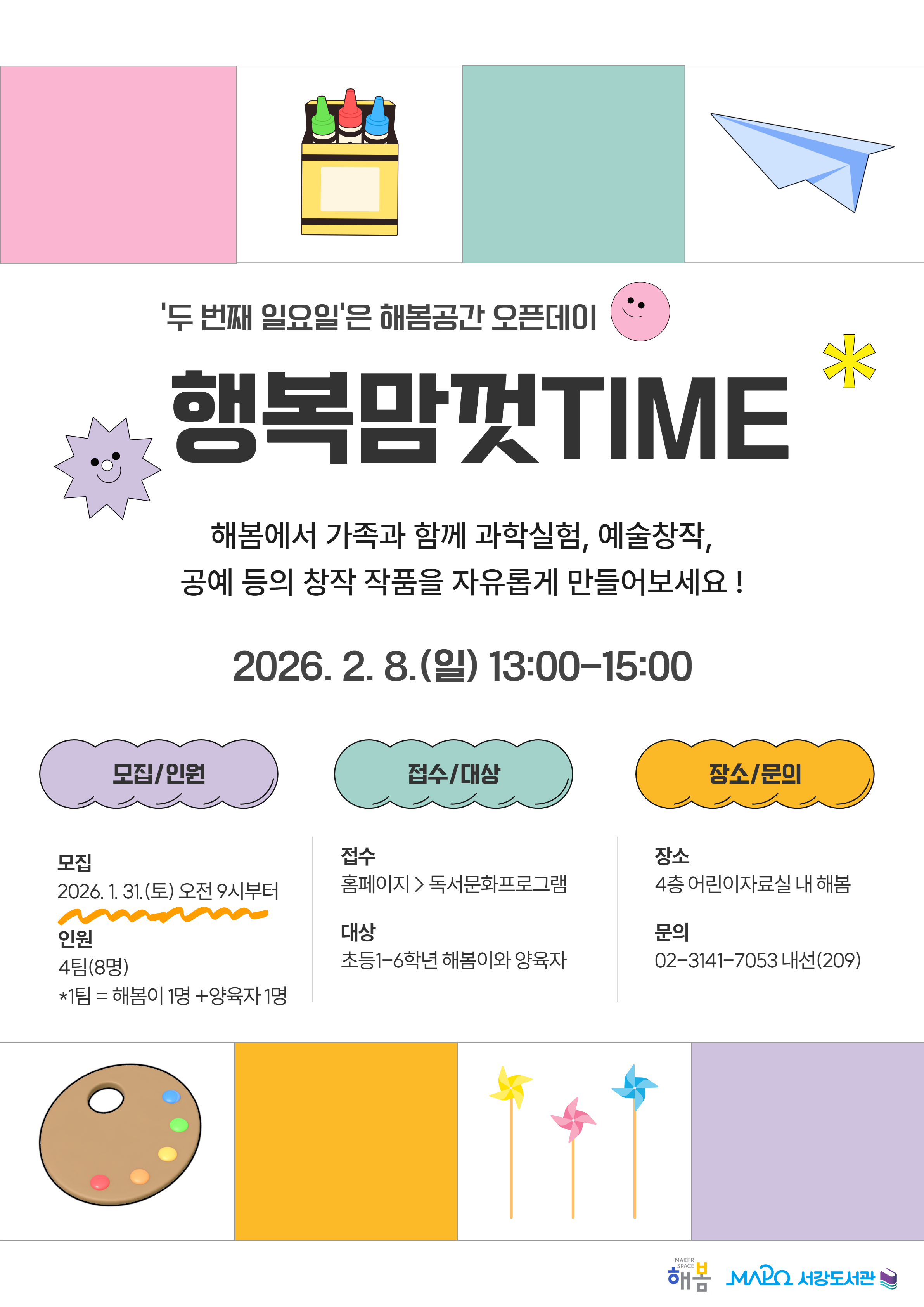 [마포구립서강도서관] [2월/어린이메이킹] 행복맘껏time (두번째 일요일은 해봄공간 오픈데이)