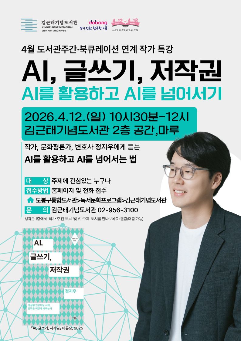 [김근태기념도서관][도서관주간] AI, 글쓰기, 저작권:AI를 활용하고 AI를 넘어서기