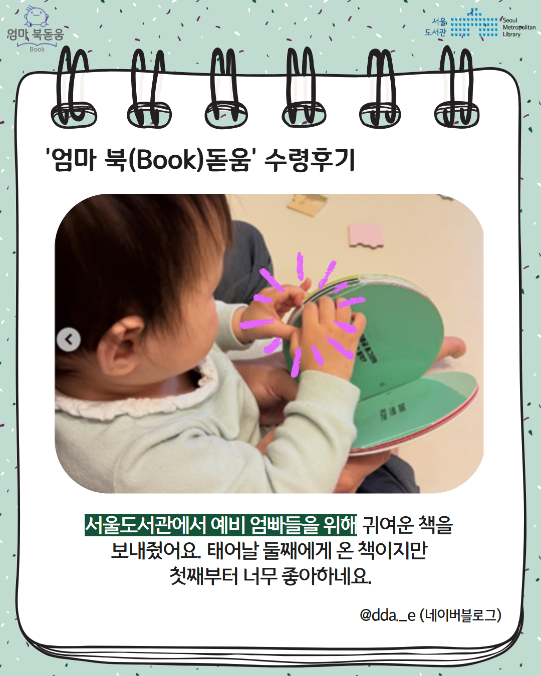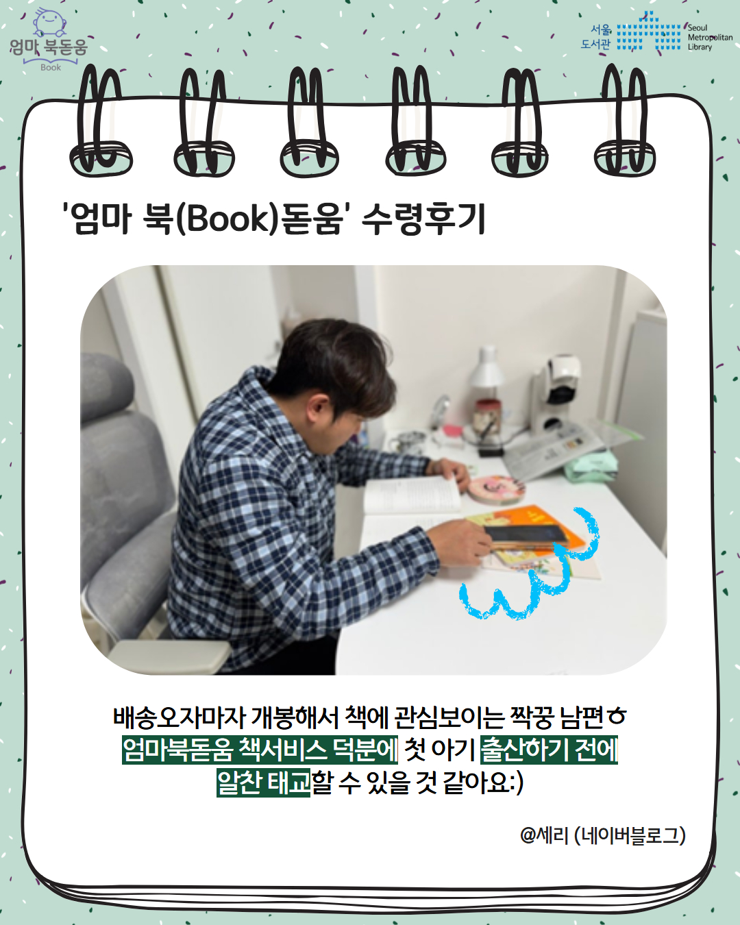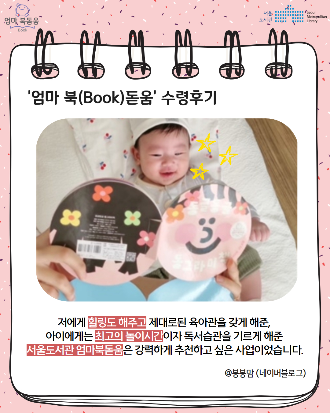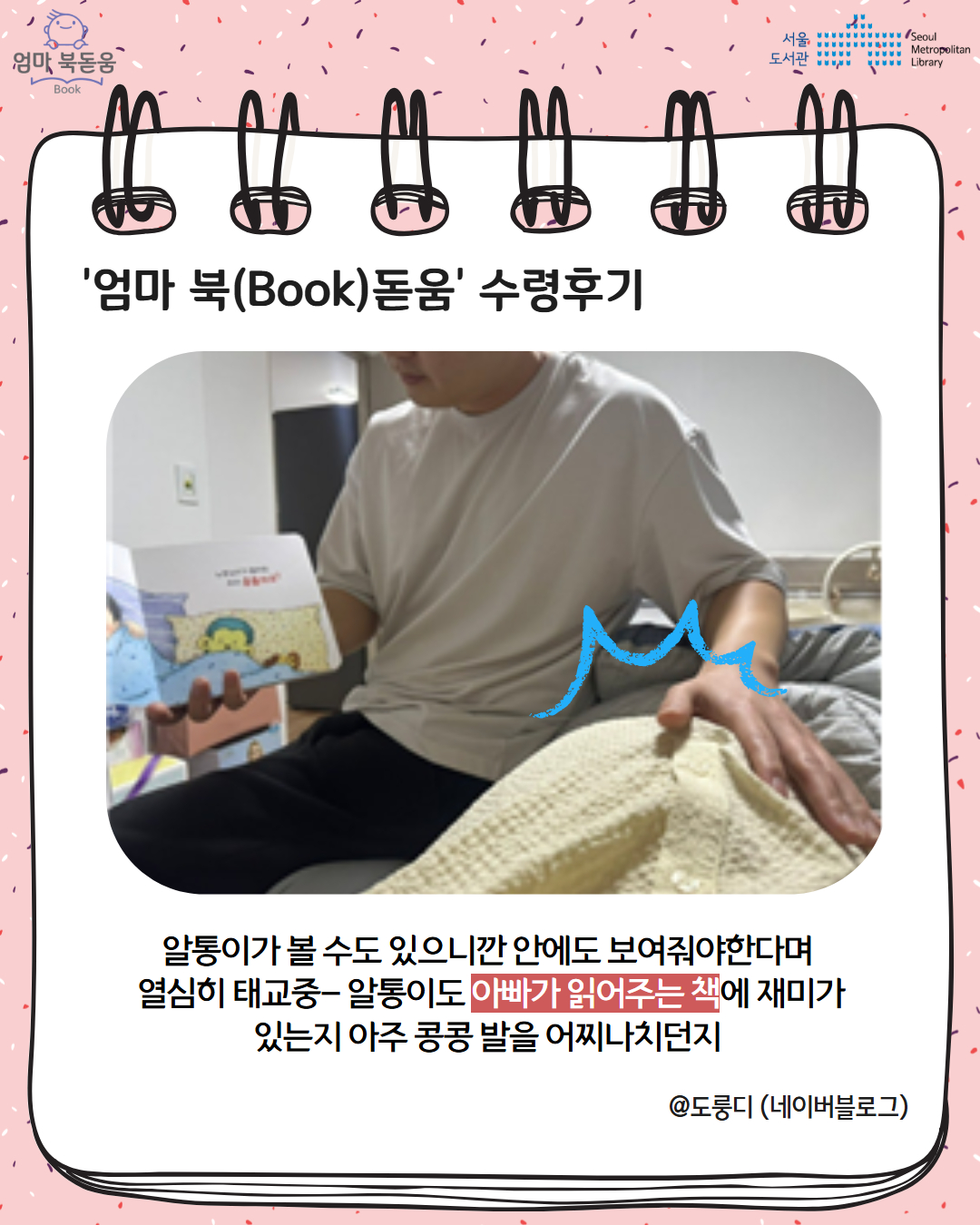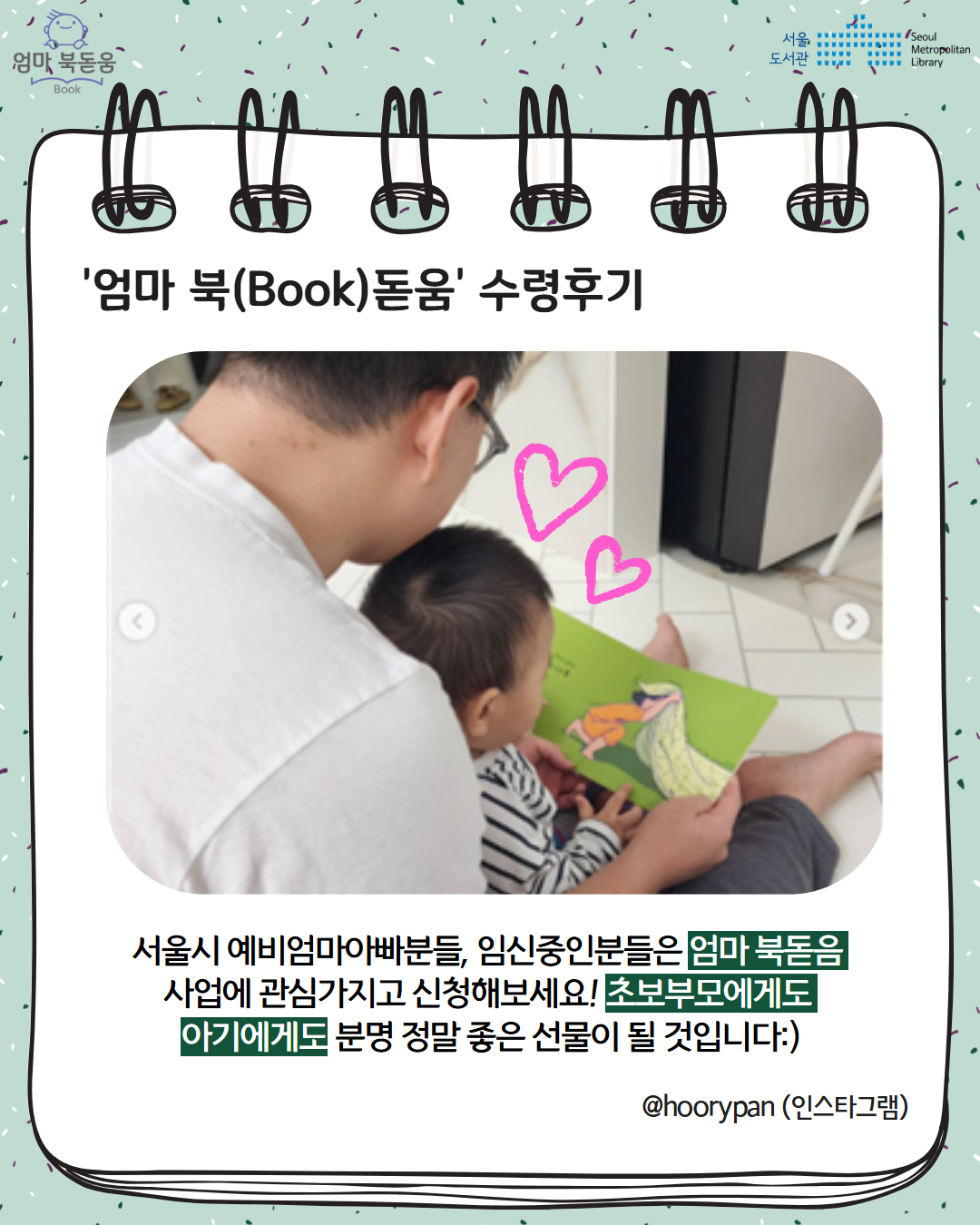 서울시 북스타트 엄마 북돋움 책선물을 받은 엄마아빠의 이야기를 들어보세요.
